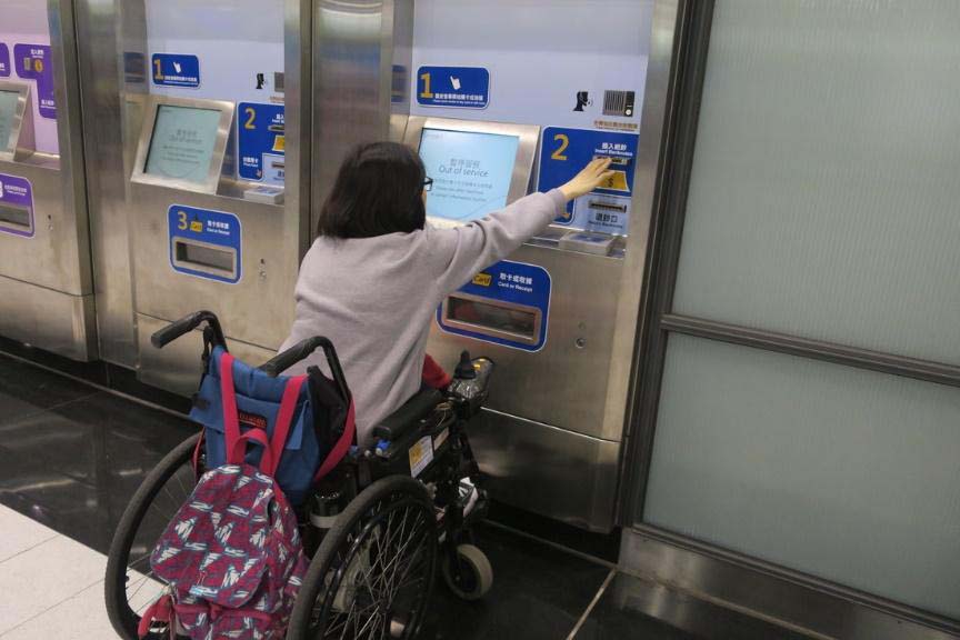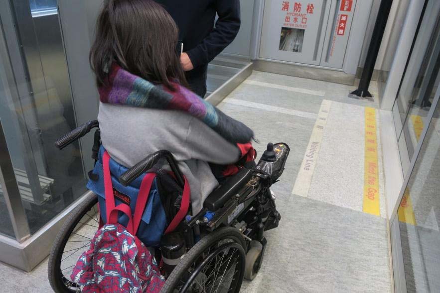 買完票之後,大家都有聽說,許多輪椅難正面進去很容易「卡輪」造成危險,從後輪進去雖然較理想 但也容易因視線因素或是因乘客較多而撞到別人。建議可以請陪同者或站務人員協助並留意,這是在現行硬體設備無法調整下,比較折衷確保大家安全的作法。