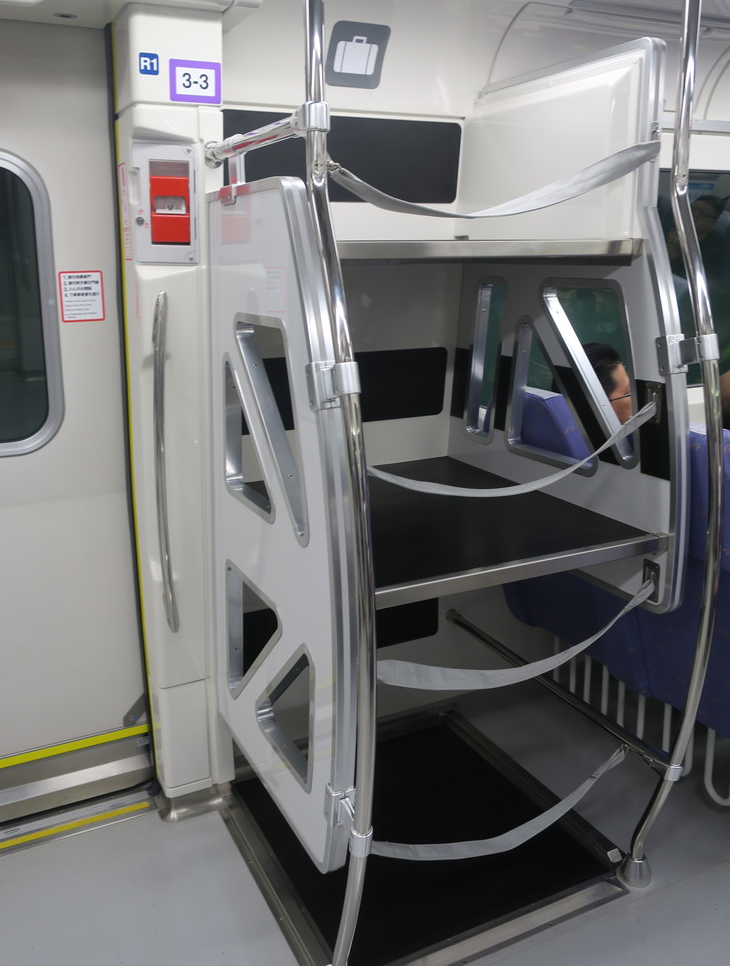 約四、五位乘客的行李就可能把行李架塞滿了,據說行李可以放在位子下方,但應該放不下行李箱,行李空間似乎不太夠,除非大家辦理預備登機行李已經直接從台北車站托運。不曉得有沒有朋友可以為我們解惑一下……?