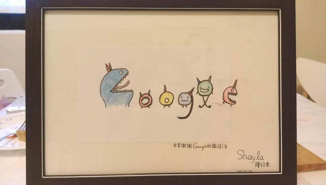 而玟聿也將自己特地親手繪製的怪獸Doodle,送給立峰總經理作為感謝能有這次參訪機會的禮物,Google的團隊看到後都直呼太可愛了!