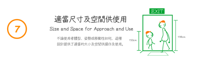 透過通用設計七原則,就能超越各種阻礙,並限制消除社會差異性及標籤,創造一個共存共融的社會。